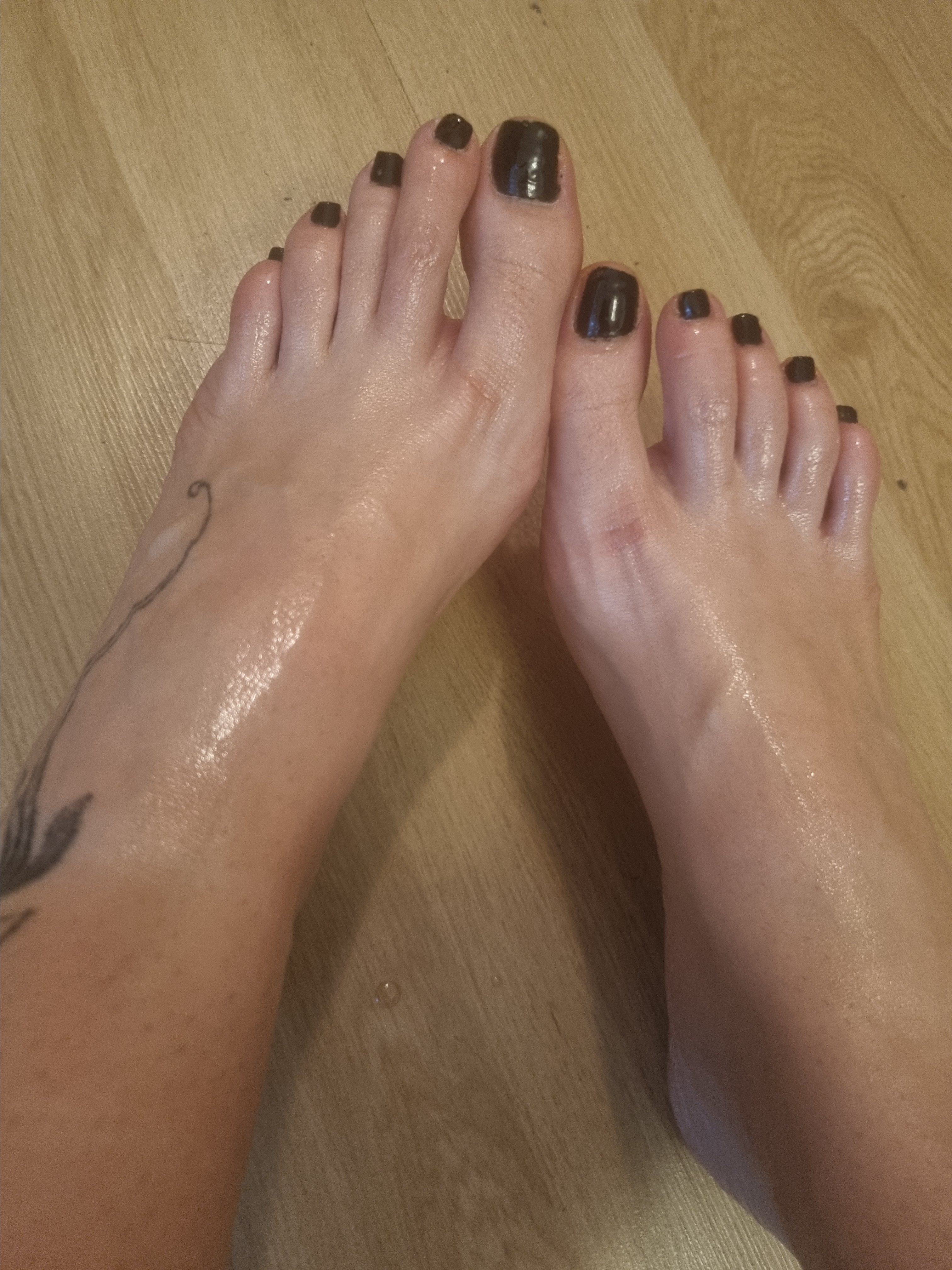 Nice feet in the snow, clear and clean.